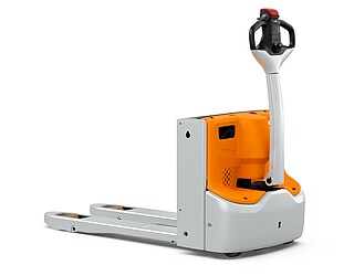 Fits in even the smallest of spaces. Or inside a lorry. The EXH 14 pedestrian low lift pallet truck is so compact and agile that you can manoeuvre it effortlessly around the loading area of a lorry. If necessary, even with the tiller raised – thanks to the intelligently positioned controls. The ergonomics really come into their own when the tiller is in the horizontal position: the extra-long tiller protects your feet while enabling you to maintain a back-friendly posture, and the LED display in the tiller head provides you with all relevant vehicle information at a glance. In particular, the low Ast makes the EXH 14 a manoeuvring marvel in the tightest of spaces. It is robust, powerful on the ramp, boasts excellent lateral stability and performs admirably even in industrial environments. This is also true when used away from home. With a chassis height of just 740 mm, the EXH 14 can be easily transported in a lorry. Its standard 15 A on-board charger and optional lithium-ion technology ensure it is always ready to go.